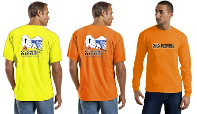 Above: The graphics were applied to short sleeve safety yellow shirts, long sleeve safety orange shirts, and black baseball caps. I used images from the shirt manufacturer's website to present graphic options and layouts to my customer